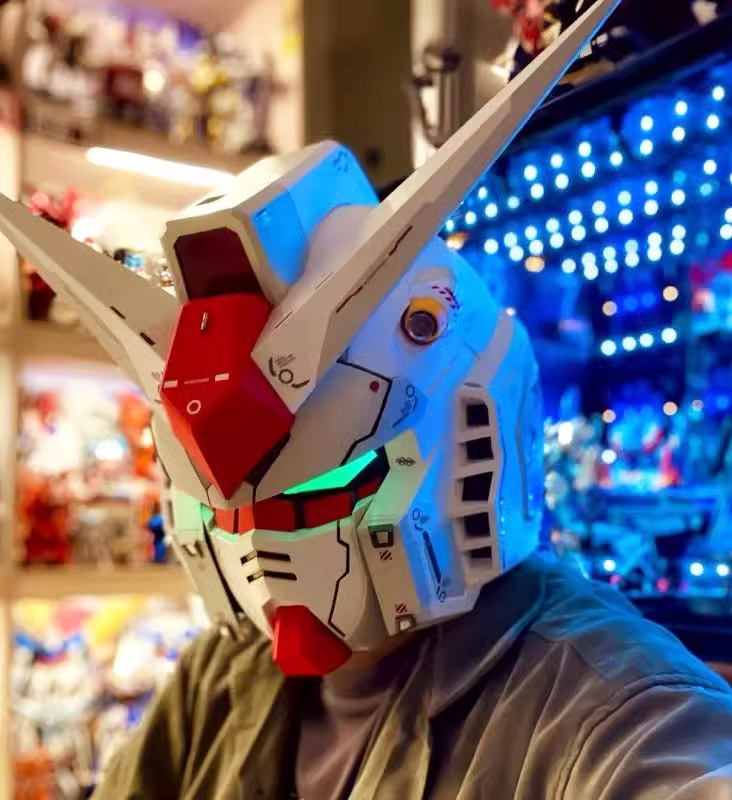 This helmet is faithfully modeled after the iconic RX-78-2 Gundam, crafted from lightweight ABS+PC composite for a full-coverage build. Designed to fit adult head sizes from 55-65cm, it features breathable vents for comfort during extended wear. Built-in multi-zone LED lighting effects switch between blue and white with a magnetic touch switch, simulating battle-mode breathing lights. Paired with a hexagonal mech display stand, it supports both “wearable showcase” and “desktop ornament” dual modes. Whether you’re cosplaying at conventions, collecting at home, or shooting creative photos, you’ll always be the center of attention.