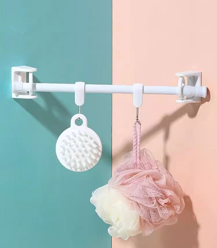 🌈 More ways to use than you can imagine! 🛀 In the bathroom, it’s a shower curtain rod and towel rack; 🍳 in the kitchen, hang spatulas; 📦 in the storage room, hang tools… Mix-and-match components freely, and the telescopic rod adapts to different spans. Install in just 3 minutes and watch your storage creativity come alive!
