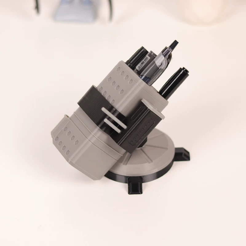 This surface-to-air missile-inspired pen holder breaks tradition with a realistic military design, featuring a detachable missile launch rack on top and a six-slot integrated pen compartment for easy storage of all your stationery. The smooth-bearing base enables effortless 360° rotation with a gentle touch, making grabbing your pen quick and efficient. The red-and-grey tech color scheme, paired with the motivational slogan “Pass Every Exam,” makes it both a lucky charm for students and a futuristic centerpiece for any desk—transforming daily organization into a creative ritual of conquest.
