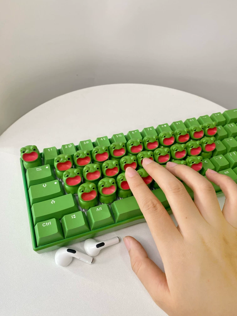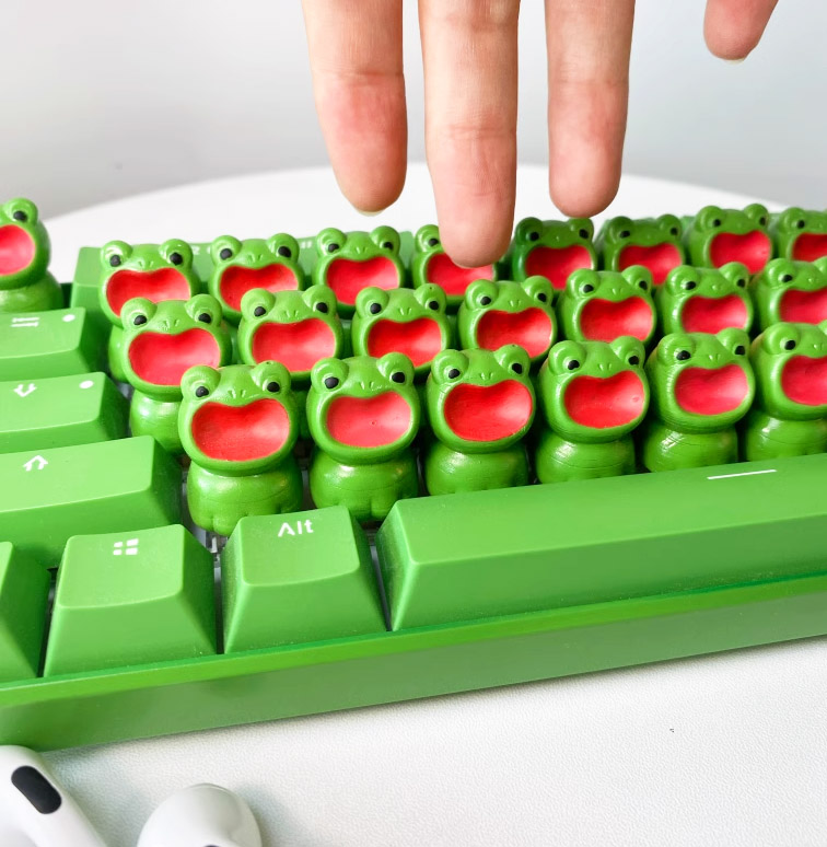 Who says keyboards have to be boxy? This one “seals” a whole gang of little frogs right onto the keycaps! 🐸➡️⌨️ Each cap is crafted with an independent resin process, with 3D frog eyes, chubby cheeks, and even detailed webbed toes! When you type, the frogs croak mischievously, like a pond concert right on your desk. 🎵