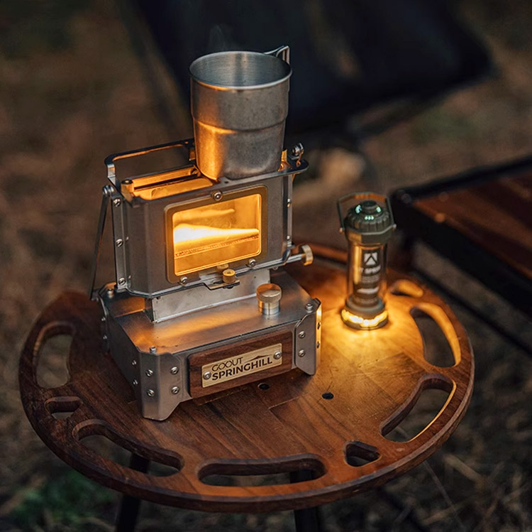 يتميز موقد جبل الربيع بجسم من الفولاذ المقاوم للصدأ 304 مع نافذة كوارتز لمشاهدة اللهب، ليتناسب بسلاسة مع أجواء التخييم والمنزل. خزان الوقود بسعة 450 مل يوفر حتى 9 ساعات من الدفء المتواصل، بينما يعزز المقبض النحاسي القابل للفك وقاعدة خشب الجوز الاستقرار. وقود الزبدة الخالي من الدخان والرائحة يضمن احتراقاً نظيفاً. الرف العلوي يدعم الغلايات أو أواني الشواء— ليجمع بين الدفء والطعام الشهي في أبرد اللحظات.