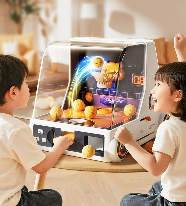 Designed for kids aged 3–6, this basketball toy blends active sports with brain-boosting gameplay. Its unique moving-hoop challenge mode, 60-second time-attack, and auto-sensing scoring system help develop hand-eye coordination and reaction speed. Dynamic lights and sounds plus a coin-start mechanism recreate the arcade vibe. Made with eco-friendly materials and rounded edges for safety—an excellent birthday gift choice.