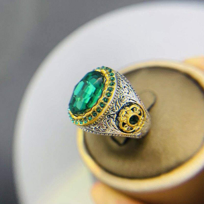 Combining European and American fashion with a touch of vintage flair, the European style men’s ring showcases a unique personality with its emerald and green cubic zirconia inlays. Exquisite craftsmanship and diamond setting make the fingertips radiate with brilliant light, showcasing a distinctive charm and fashion taste.