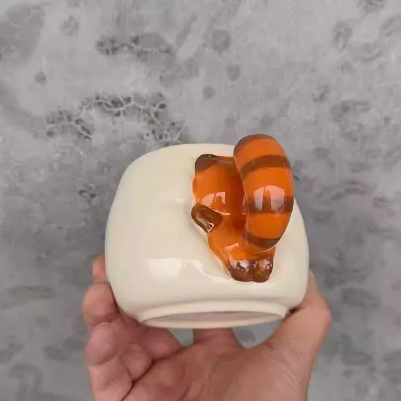 This mug is far more than a container—it’s a storytelling art piece for your desk. The designer cleverly fuses a playful little raccoon with the cup body, its fluffy 3D tail naturally curling into a one‑of‑a‑kind handle that feels comfy and delightfully fun to hold. Premium ceramic gives it a warm touch and delicate sheen. Whether it’s your morning coffee or an afternoon milk break, it instantly lifts your mood and turns everyday sipping into a soothing little ritual. It’s a practical mug—and a cute companion by your side.