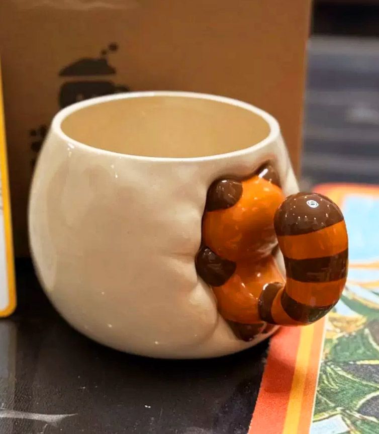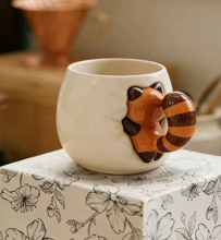 Love at first sight! This is no ordinary mug—it’s a mischievous raccoon playing hide‑and‑seek with you 🐾. Its whole body “bonks” into the cup wall, leaving only a big fluffy tail that loops into the handle. Every time you pick it up, it feels like shaking hands with a tiny woodland friend—heart officially melted.