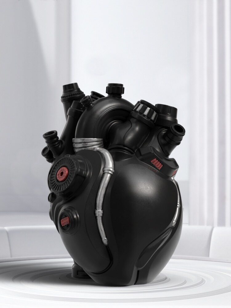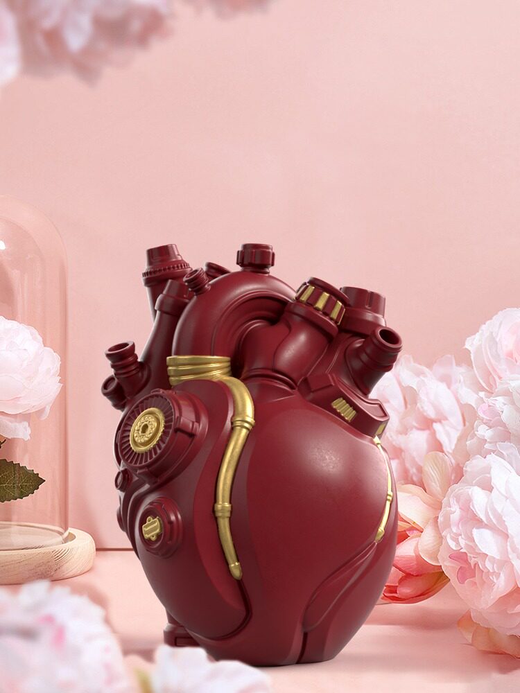 This Cyberpunk-inspired mechanical heart vase from Detroit exudes a strong sense of technology with its unique design and spacesuit-like color scheme. Made from resin material, it can hold dried flowers, artificial flowers, or LEGO flowers, making it a truly distinctive home decor piece. With its steampunk gears and subtle shimmer, it brings a touch of futuristic sci-fi charm to any room.