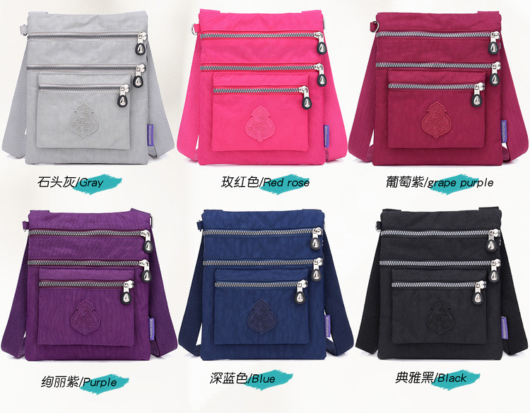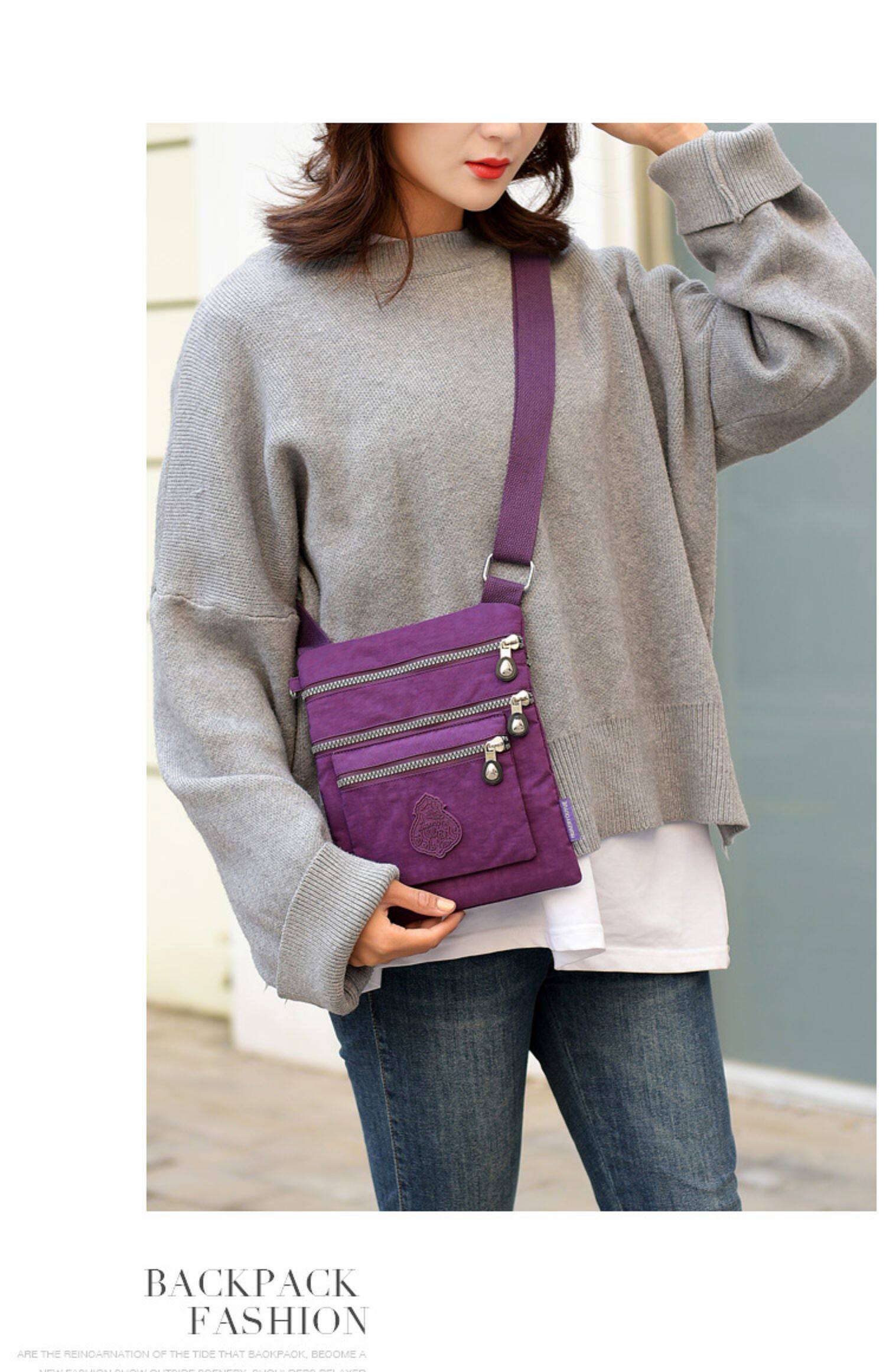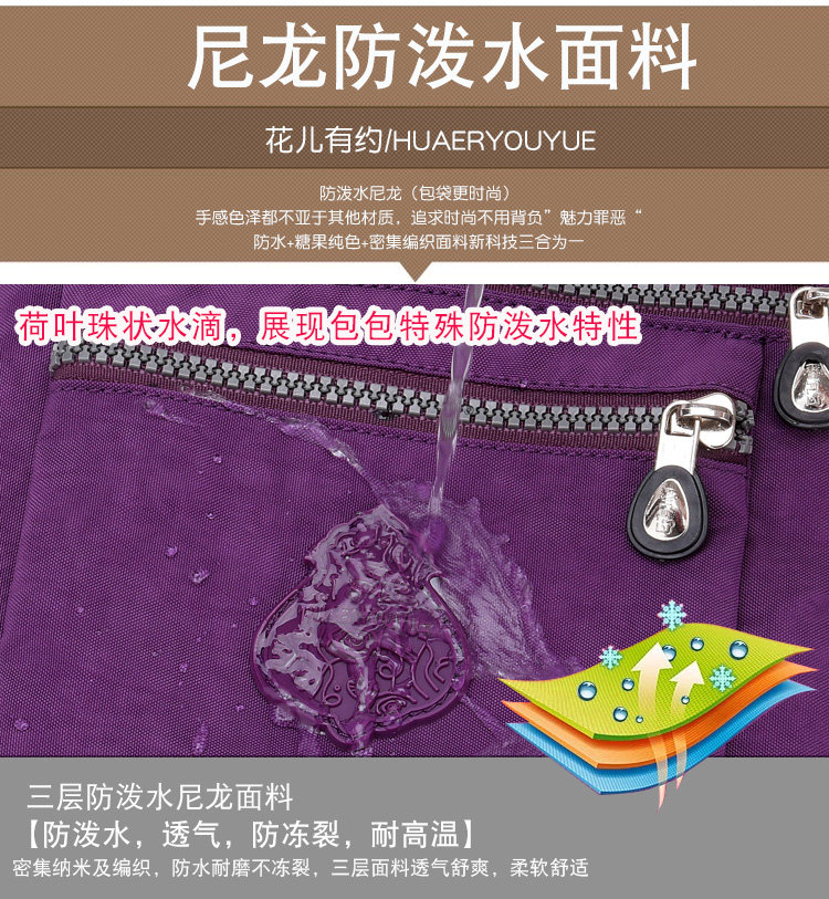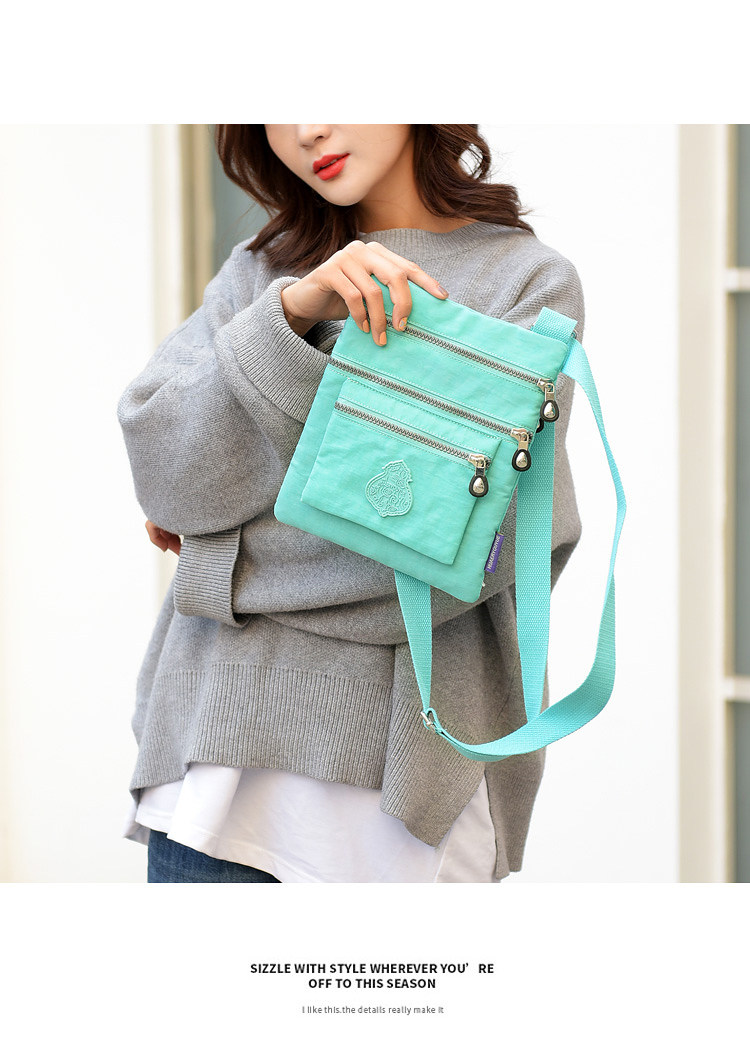 Die leichte und praktische wasserdichte Nylon-Damentasche wird mit ihrem modischen Design und ihrer vielseitigen Funktionalität zur idealen schrägen Schultertasche. Sie besteht aus drei Schichten wasserdichtem Nylonstoff und verfügt über eine versteckte Reißverschlusstasche und eine Handytasche, die einen einfachen und eleganten Modestil zeigt.