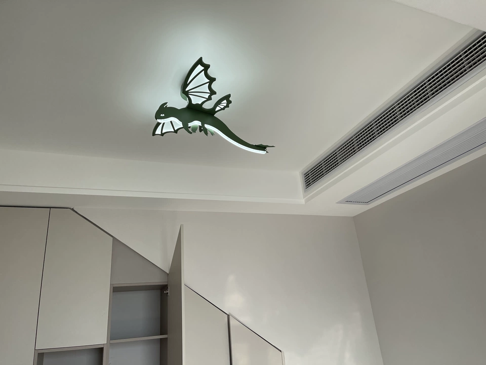 Diese Kinderlampe ist im Thema „Drachenzähmen leicht gemacht“ gestaltet und kombiniert ein niedliches Dinosaurierdesign, um dem Kinderzimmer Spaß und Persönlichkeit zu verleihen. Das Deckenmontage-Design spart effektiv Platz und eignet sich für verschiedene Raumlayouts. Das Aussehen des Produkts ist von Dinosauriern inspiriert, mit einer lebhaften Form und leuchtenden Farben, die die Aufmerksamkeit der Kinder auf sich ziehen und ihre Fantasie und Kreativität anregen.