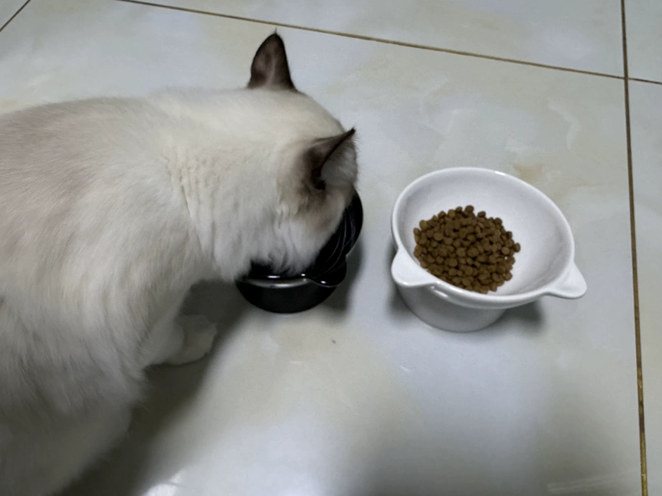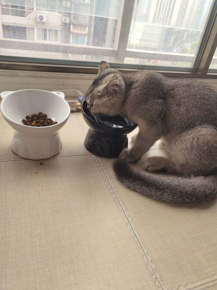 This ceramic cat bowl features a slanted design that makes it easy for cats to drink water and eat. Made from high-quality ceramic material, it is safe, non-toxic, and easy to clean, ensuring hygiene. Its modern and minimalist appearance suits various home styles, adding an aesthetic touch to your space. The elevated design effectively raises the bowl’s height, reducing strain on your cat’s neck while eating, thus protecting their cervical health. It is especially suitable for older cats or those with joint discomfort, helping them eat more comfortably.