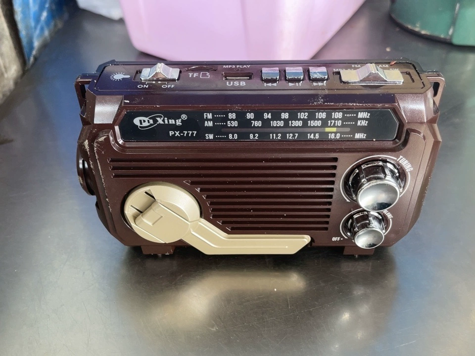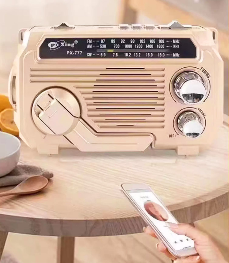 This multifunctional emergency radio is built for outdoor exploration and crisis situations. It combines three power modes—hand-crank generation, solar charging, and lithium battery power—to keep you going when the grid is down. It supports FM/AM/SW three-band radio, Bluetooth 5.2, TF card/USB playback, and comes with a high-brightness LED flashlight and a 3W loud speaker. The retro beige-and-black body is compact and portable, with a built-in 18650 battery. Practical and durable, it’s a reliable partner for camping, disaster preparedness, and seniors.