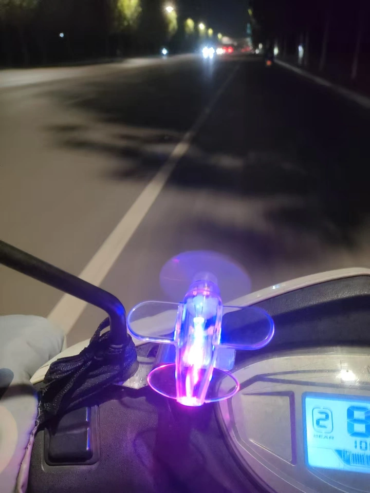 Una decoración LED única diseñada específicamente para vehículos eléctricos y motocicletas. Genera electricidad a través de energía eólica, utilizando un modelo de avión giratorio para crear luces intermitentes, añadiendo una vibrante iluminación a su vehículo por la noche: ecológico y creativo.