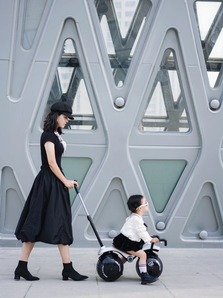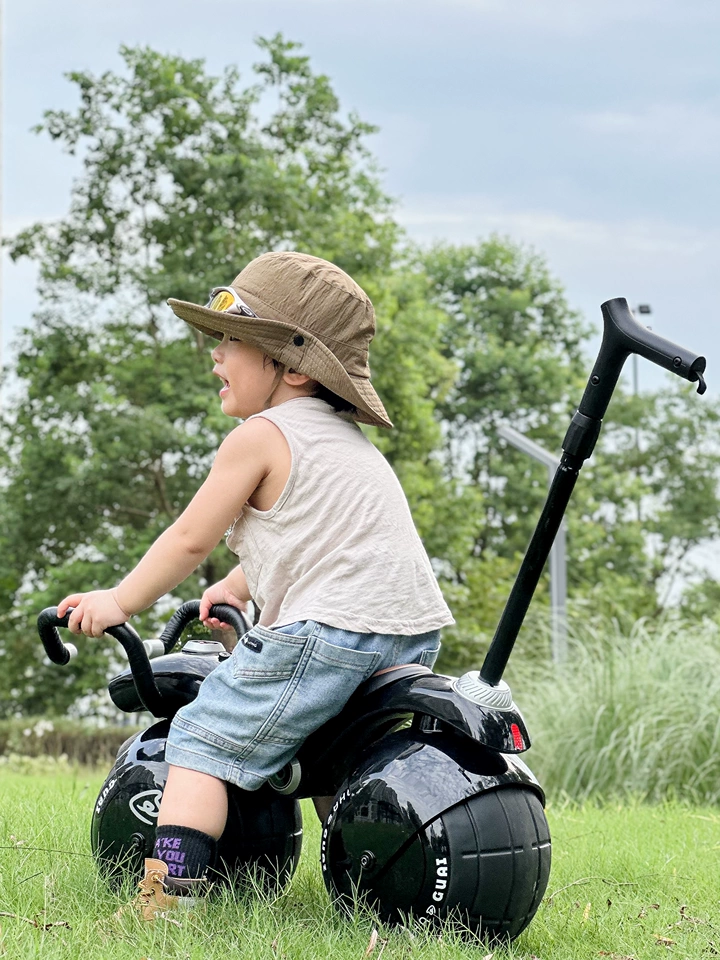 La bicicleta de cacahuate cuenta con una función de dos en uno, permitiendo a los niños elegir entre el modo deslizante o oscilante para satisfacer diferentes necesidades de juego. También está equipada con luces y música, añadiendo diversión visual y auditiva para aumentar la alegría de los niños. El diseño incluye dos modos: uno con un mango de empuje para que los padres ayuden, y otro sin mango de empuje, permitiendo a los niños conducir de manera independiente, fomentando su sentido de independencia.