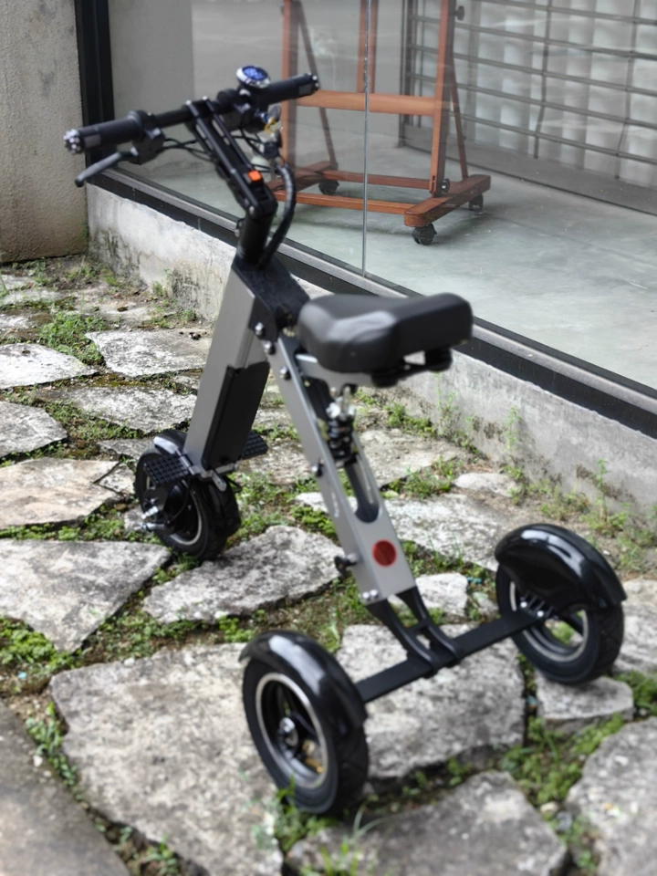 This foldable three-wheel electric scooter is designed for portable travel, lightweight, and easy to fold, making it ideal for trips and urban commuting. Its three-wheel design ensures stability, suitable for users of all ages. The body is made of high-quality aluminum alloy, which is both sturdy and lightweight, facilitating easy transport. The folding mechanism is simple, allowing it to be folded in seconds, making it convenient to store in a car trunk, on public transport, or in an airplane’s luggage compartment, greatly enhancing travel flexibility.