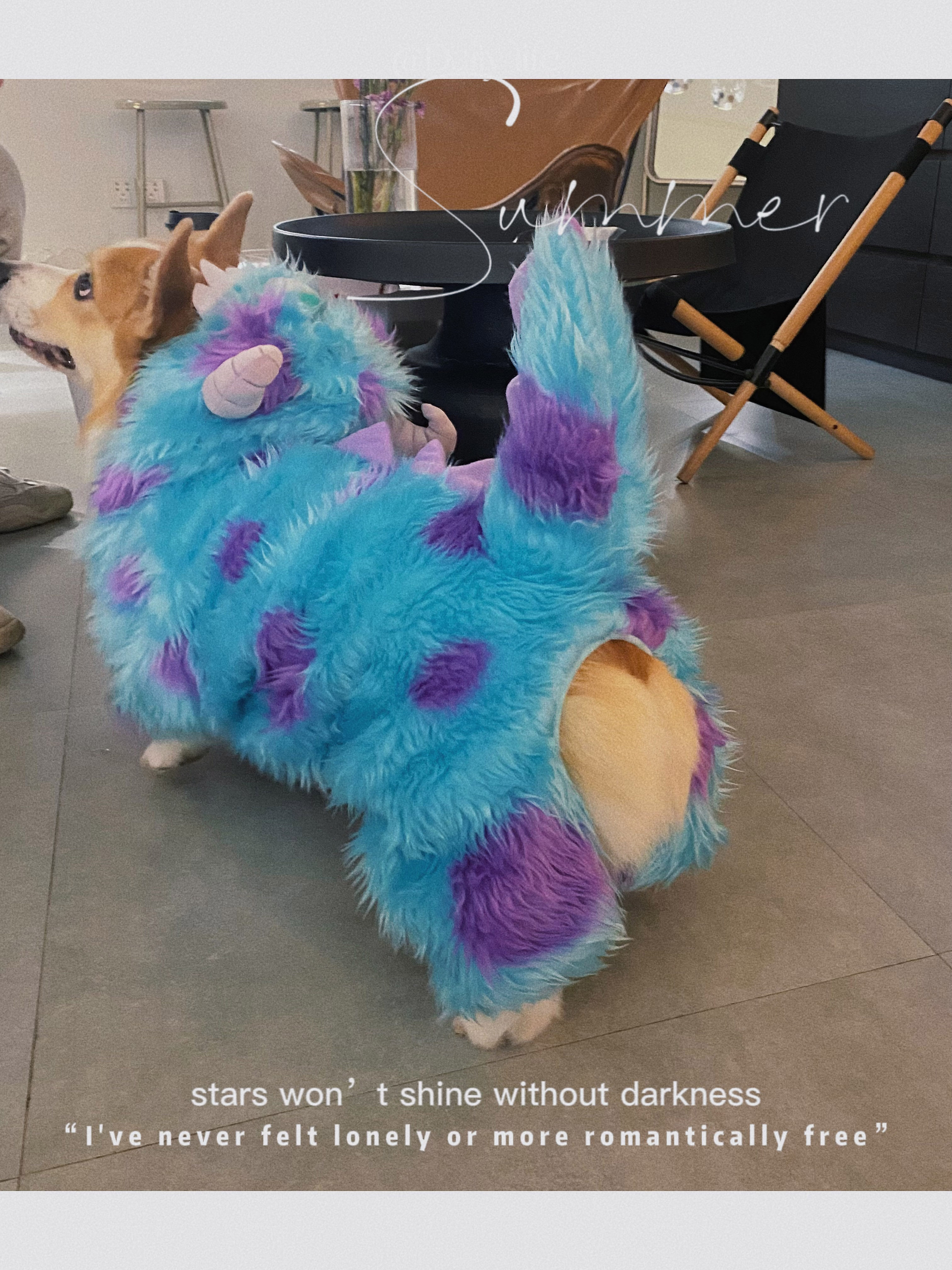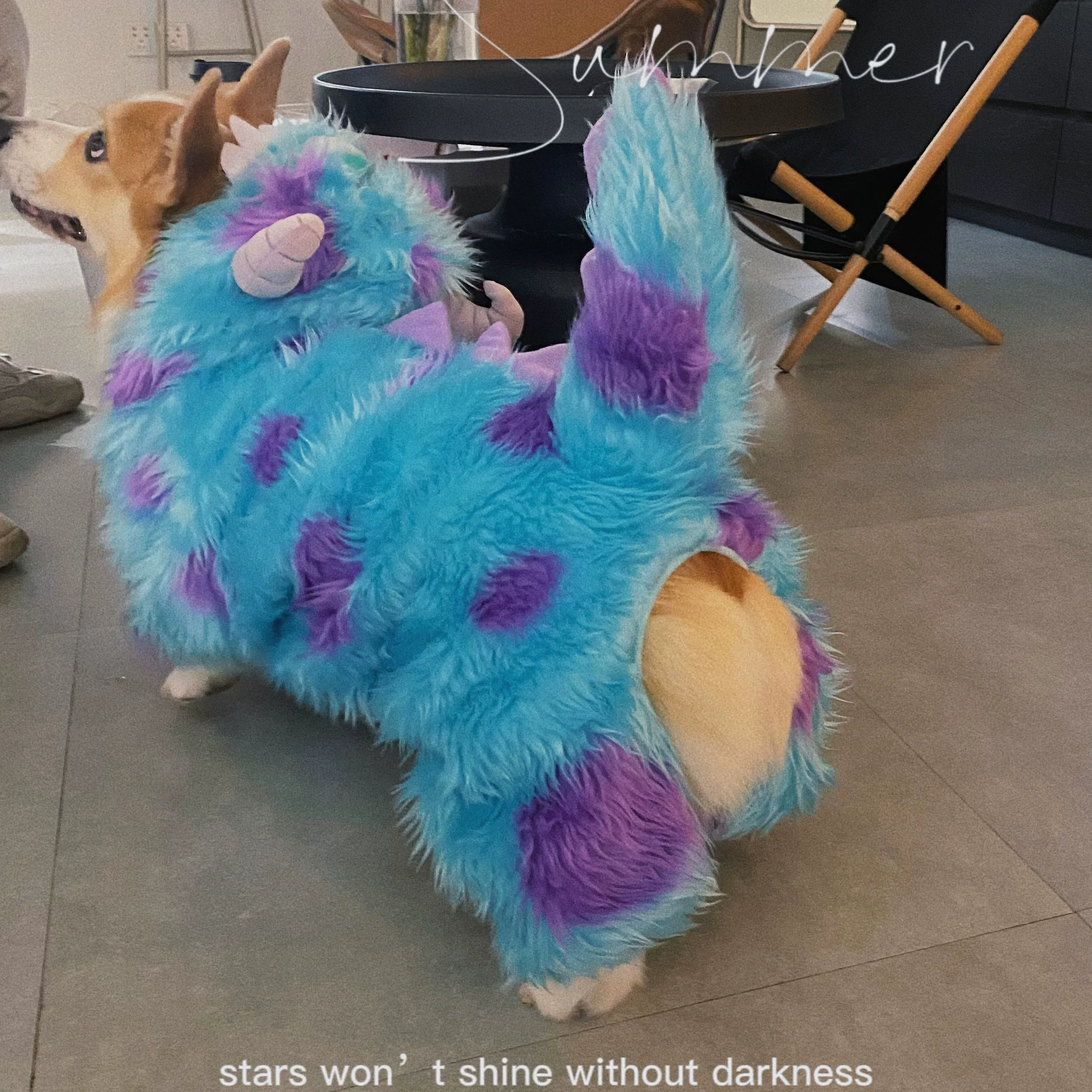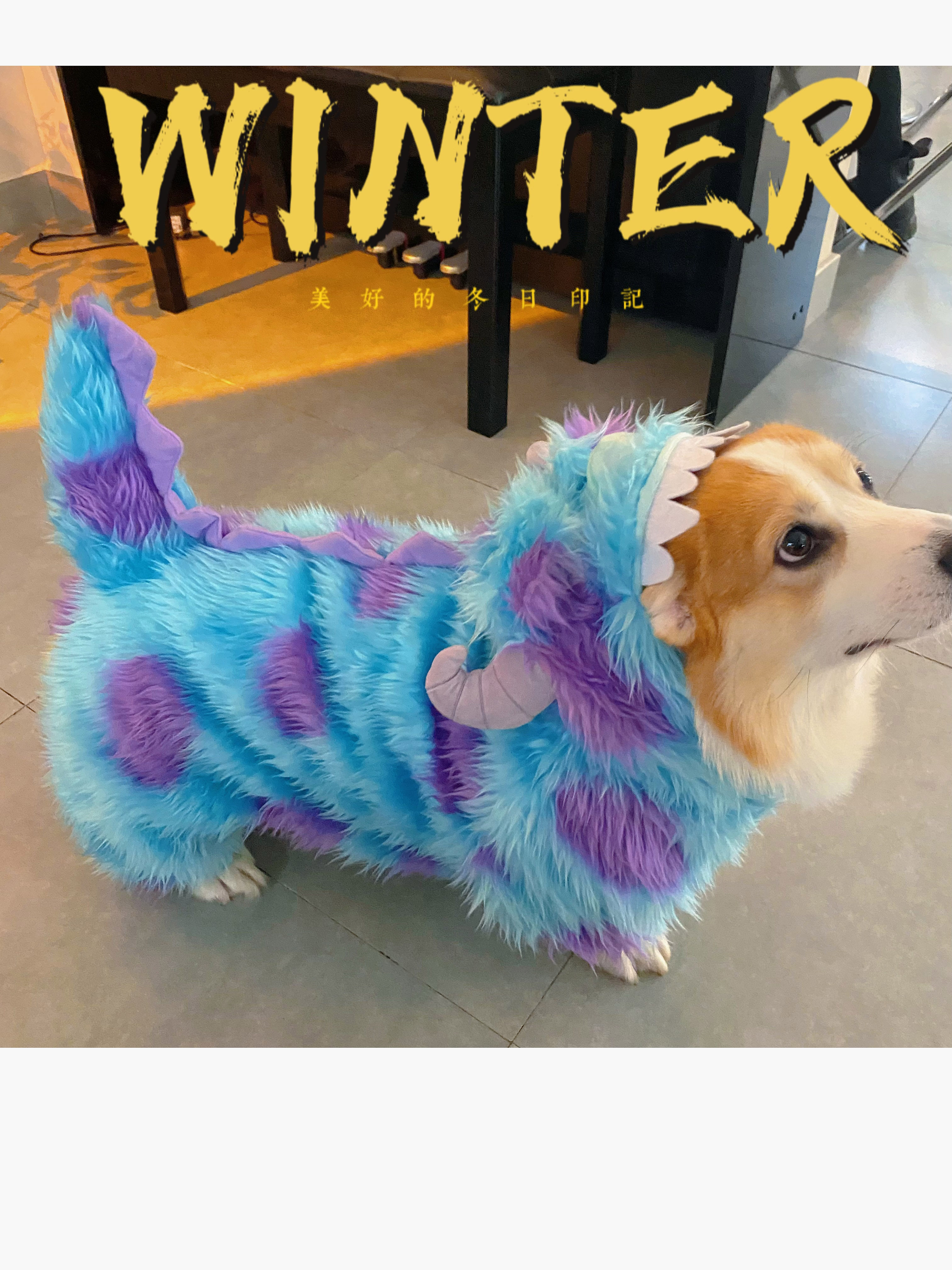 Ce costume original de monstre pour chien est un hoodie à quatre pattes spécialement conçu pour les animaux de compagnie, adapté à différentes races de petits chiens comme les Corgis et les Shibas. Fabriqué en tissu pelucheux doux, ce hoodie offre du confort tout en gardant les chiens au chaud et en les rendant adorables et amusants. Le design s’inspire des monstres de dessins animés, avec des couleurs vives de bleu et de violet qui donnent au hoodie une ambiance vive, parfaite pour l’hiver ou les occasions festives.