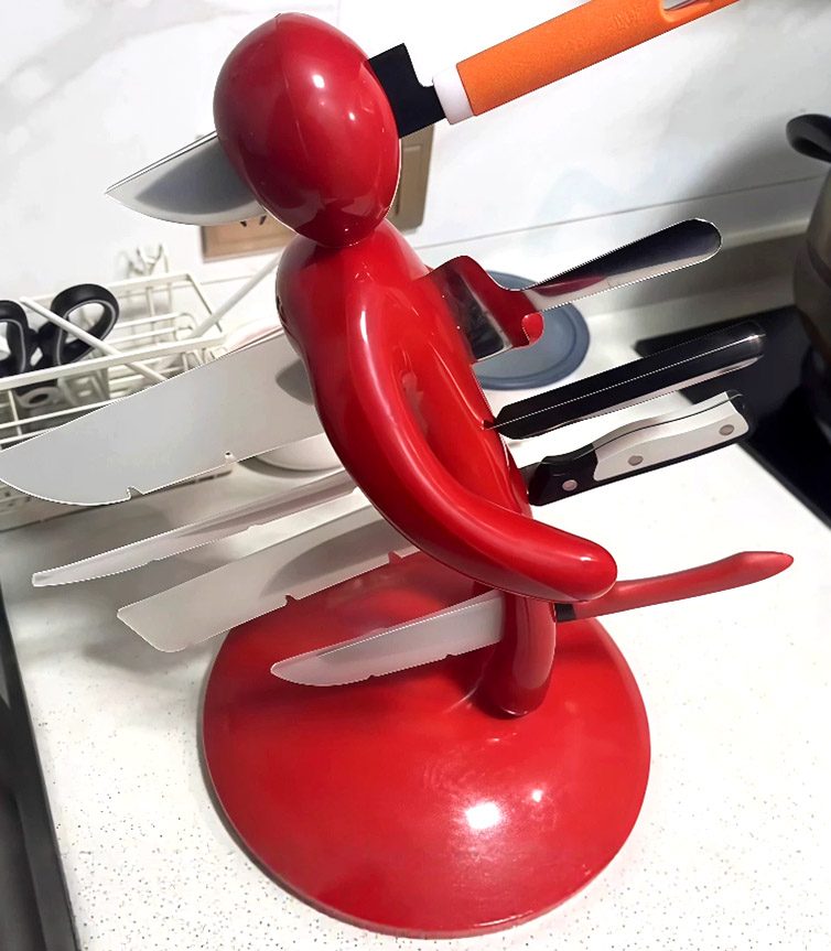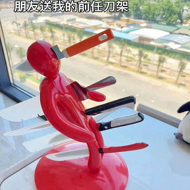 Ce porte-couteaux humanoïde sur le thème de “l’ex” 🔪 est un organisateur de cuisine d’une créativité folle. Centré sur une figurine rouge audacieuse, il comporte des fentes de précision sur le corps pour ranger en toute sécurité une gamme de couteaux du quotidien. Son plus grand atout est de transformer le rangement monotone en interaction ludique—chaque insertion et retrait ressemble à un petit rituel malicieux. Il élimine non seulement les risques liés au désordre des couteaux, mais sert aussi de pièce déco marquante qui apporte humour et personnalité aux intérieurs modernes.