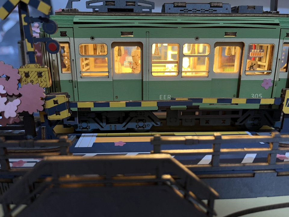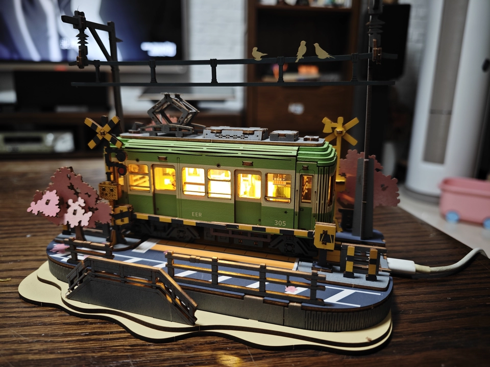Ce puzzle est également équipé d’un dispositif d’éclairage LED, ajoutant une atmosphère unique au modèle de tram, surtout la nuit, lorsque les effets lumineux sont enchanteurs et créent une scène de fleurs de cerisier de rêve. Le modèle terminé est parfait pour la décoration intérieure, que ce soit sur un bureau, dans le salon ou dans une vitrine, devenant un point focal impressionnant.