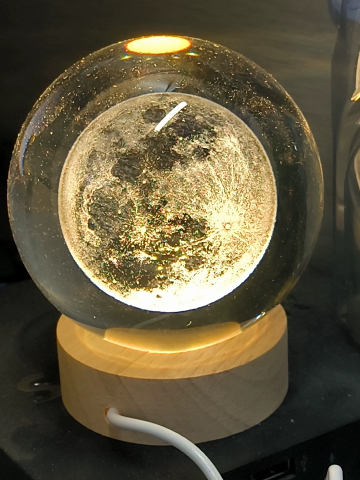 This item is perfect as a birthday gift, especially suitable for both boys and girls. Its design inspiration comes from the universe, featuring exquisite patterns of stars and the moon, creating a dreamy visual effect. The crystal ball is made from high-quality glass, finely polished to ensure a smooth and transparent surface, allowing for a clear display of the internal starry details. The sphere is crafted using advanced laser 3D printing technology, providing rich layers that seem to capture the mysteries of the cosmos.