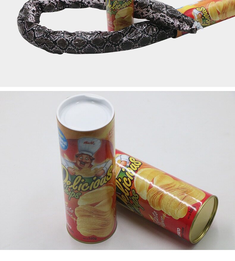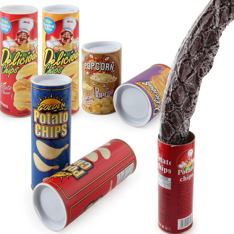 Disguised as a classic snack, this hyper-realistic snake chip can unleashes a lifelike spring-loaded serpent the moment you pop the lid—delivering a dramatic surprise! The reusable spring mechanism means you can prank endlessly—perfect for parties, gifts, and more. With discreet shipping and greeting card writing service, your prank stays top secret. Break social barriers with harmless, creative mischief—because laughter is a universal language!