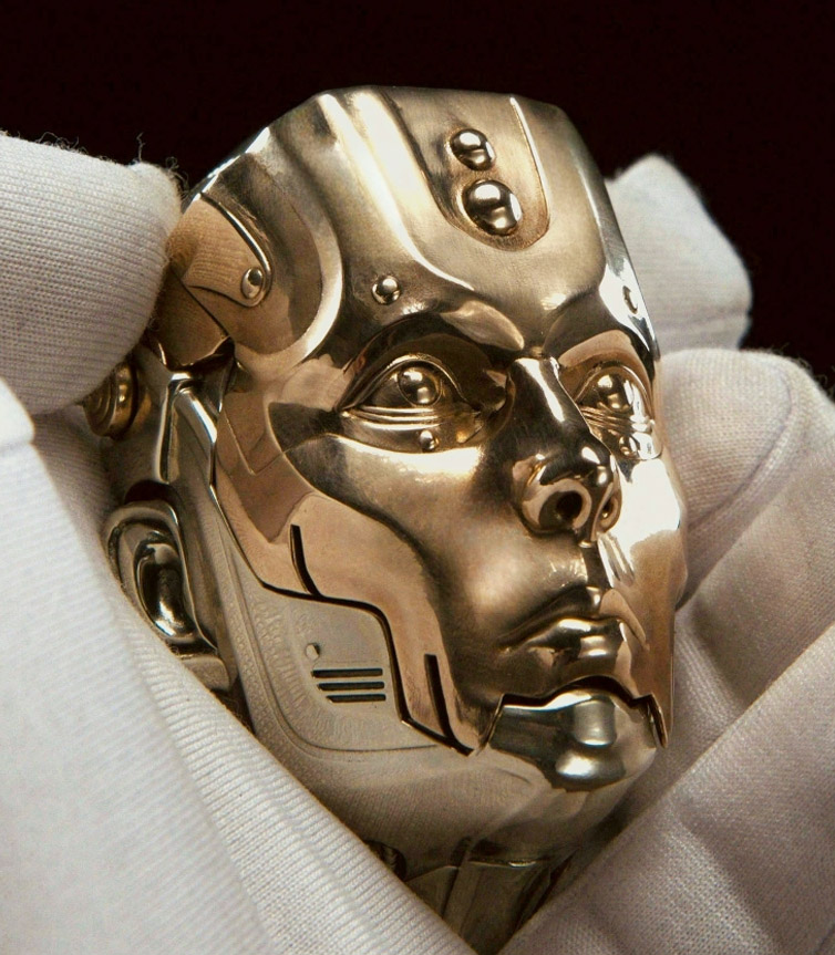 Renaisans bertemu cyberpunk! Kerawang berongga di sekitar rongga mata menyembunyikan motif roda gigi, memantulkan kilau metalik berlapis di bawah setiap sorotan cahaya. 🌹 Bahkan susunan giginya pun direkayasa dengan pemodelan 3D kelas industri.
