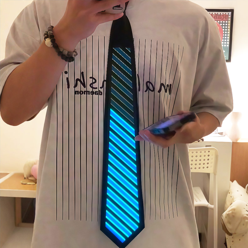 このサウンド&ライトのインタラクティブネクタイは、ウェアラブルテクノロジーの美学を新たな高みに引き上げます。EL冷光技術によるなめらかでムラのない発光、音声感知とスマホアプリの2つのモードに対応。マグネット式の一体型デザインで、伝統を打ち破る—わずか3秒で着用完了!