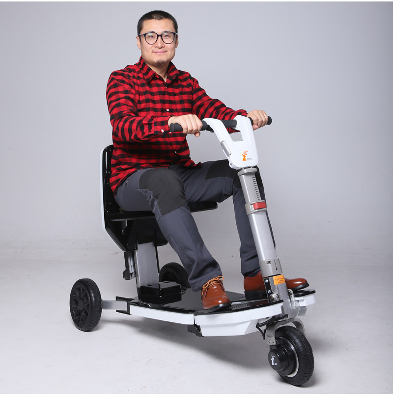 노인을 위한 가벼우며 휴대 가능한 전동 스쿠터입니다. 접이식 디자인과 총 중량 26kg으로 휴대하기 쉽습니다. 3개의 바퀴 디자인으로 노인들에게 안전한 주행을 제공합니다. 차량 트렁크에 손쉽게 넣을 수 있어 이동이 용이합니다. 민간 항공기 탑승 규정에 부합하며 다양한 지형과 도로에 적합합니다. 핸들, 조종 장치, 시트 높이 등 여러 가지 조절 가능한 기계 부품이 있어 사용자의 요구에 맞게 적응하여 편안함과 안전성을 보장합니다. 노인들이 자유롭게 이동할 수 있는 편리하고 안정적인 이동 경험을 즐기세요.
