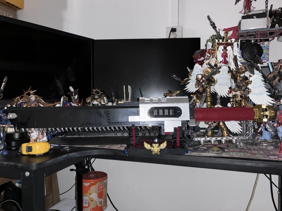 Da águia imperial no cabo à lâmina vermelho sangue, até os espaços das engrenagens escondem easter eggs de Warhammer 40K! O próprio Dong Dong desenhou o set, infundindo “praticidade” em cada detalhe — a montagem é um quebra-cabeça e o manual traz dicas profissionais: reforce as juntas com elásticos para uma espada estável como um Titã!