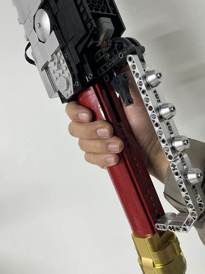 Quem disse que blocos de montar servem só para exibir? Esta espada-serra esconde um motor embutido — basta um clique e a corrente gira com um “bzzz”, despertando o herói que existe em você! Os 85 cm e a precisão de encaixe digna de um relógio suíço fazem dela o acessório perfeito para cosplay — as crianças da vizinhança vão morrer de inveja!