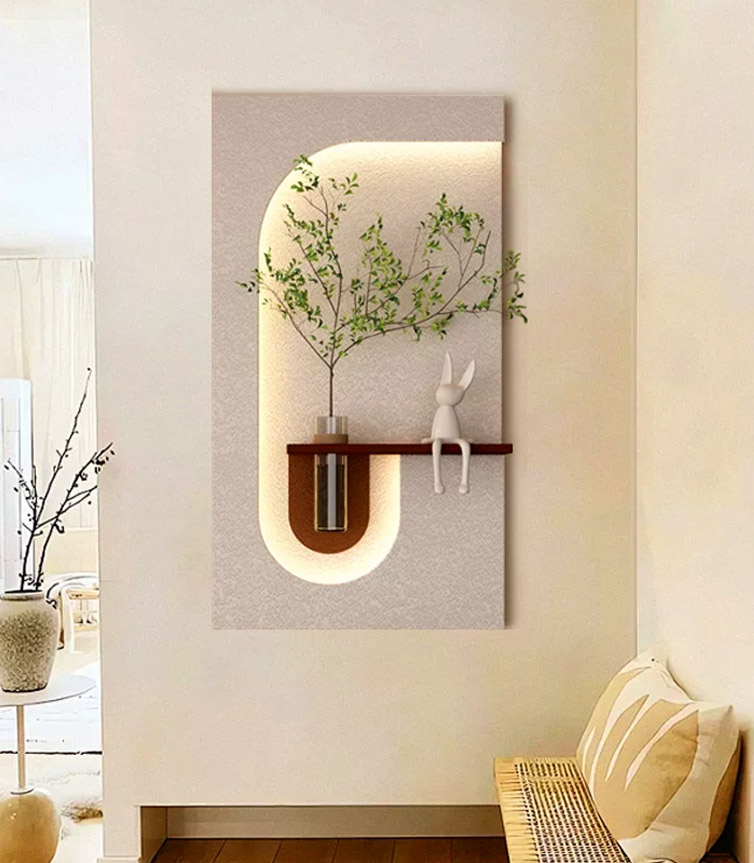 • A mini ecosystem on your wall! Greenery, light, and sculpture—full marks for creativity. 🎯