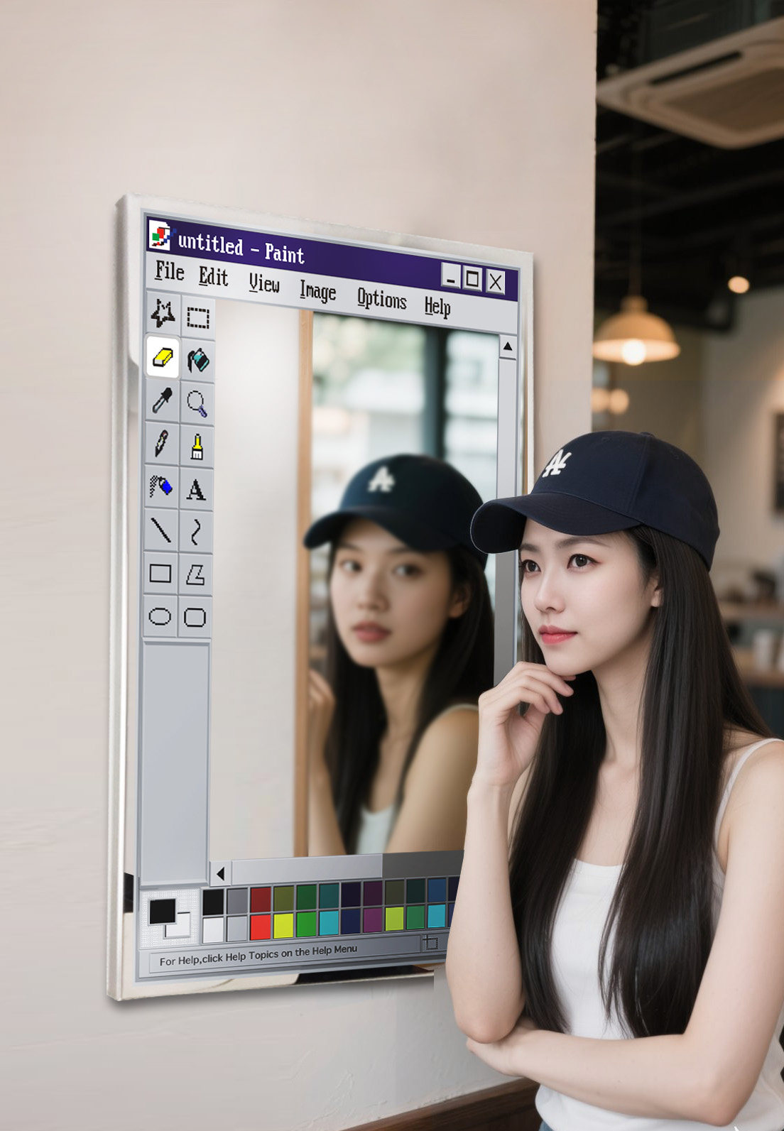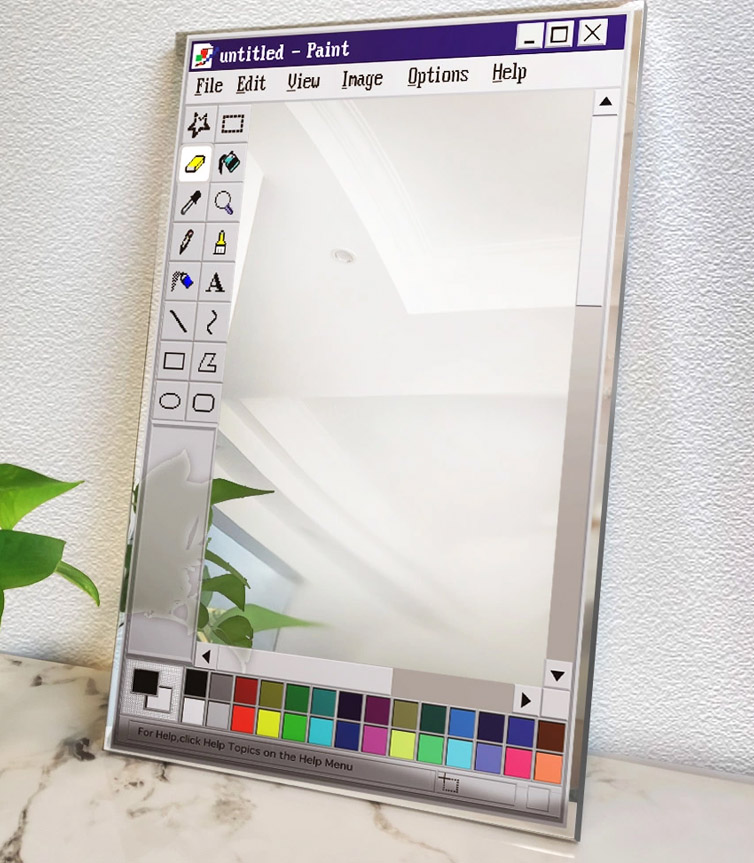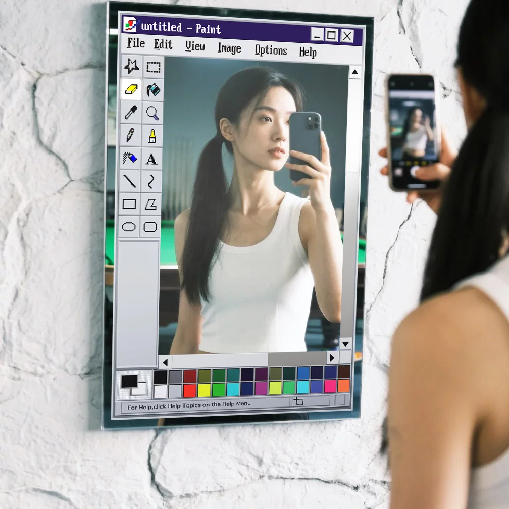 This mirror is a fourth-wall breaker ✨ It drags a retro painting software UI straight out of the computer and into real life.