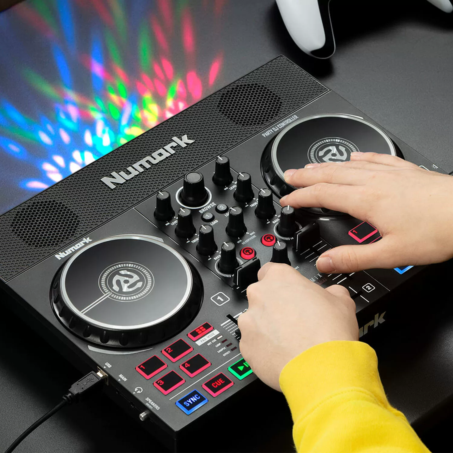 Designed for music lovers and party enthusiasts, this DJ controller not only boasts powerful features but also comes with professional DJ software, making it suitable for both beginners and experienced DJs. The Partymix II is equipped with large touch-sensitive platters, providing a precise control experience that allows users to easily mix and edit tracks. The control panel features multiple function buttons, including looping, hot cues, and effects control, enabling users to quickly switch between different effects and enhance the excitement of their performance. Additionally, the built-in lighting effects can flash in sync with the music’s rhythm, creating a vibrant party atmosphere.