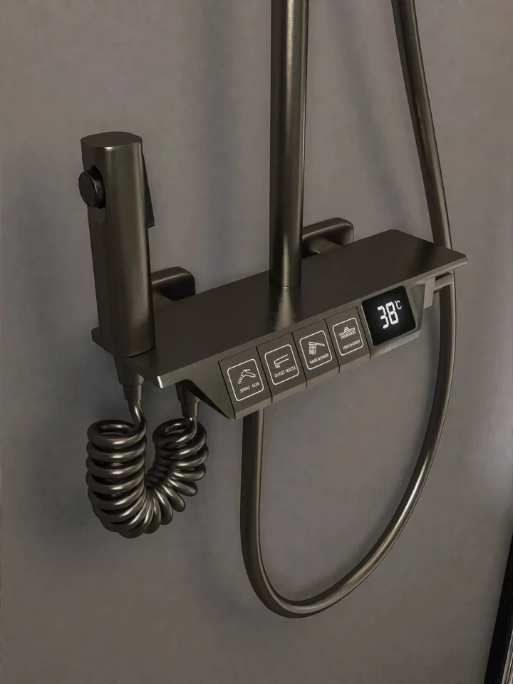 A torneira drip de teto em cobre completo apresenta um design abstrato impressionante e inclui um sensor montado no teto para controle conveniente de água quente e fria. Inspirada na forma de uma gota d’água, sua forma aerodinâmica não é apenas esteticamente agradável, mas também se integra perfeitamente a vários estilos de lar. O material de cobre completo garante durabilidade e resistência à corrosão, mantendo seu brilho mesmo após uso prolongado.