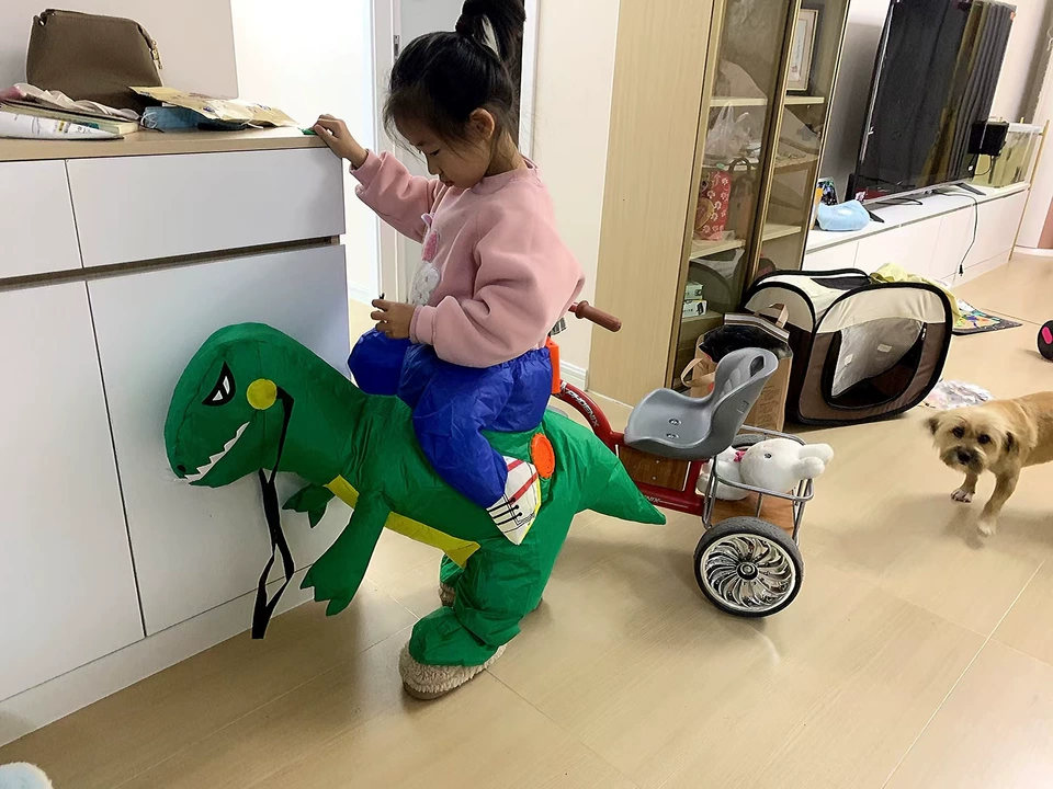 Oi, mamães! Esta fantasia inflável de dinossauro é incrível—