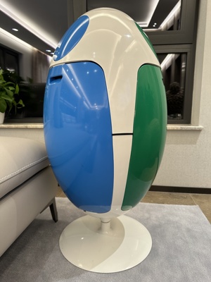 A marca italiana soldi design apresenta uma lixeira encantadora e cativante em forma de ovo de dinossauro, que não apenas serve como recipiente para o lixo, mas também melhora a estética do seu espaço habitacional. Com uma função de rotação de 360 graus e uma altura de 84 cm, essa lixeira permite uma coleta e separação conveniente do lixo. Fabricada na Itália com plástico reciclável, todos os materiais são sustentáveis. O recipiente interno removível tem capacidade de 18 litros por compartimento, oferecendo uma capacidade total de 54 litros. O design perfurado favorece a ventilação e a compressão de materiais recicláveis para um aproveitamento ideal do espaço.