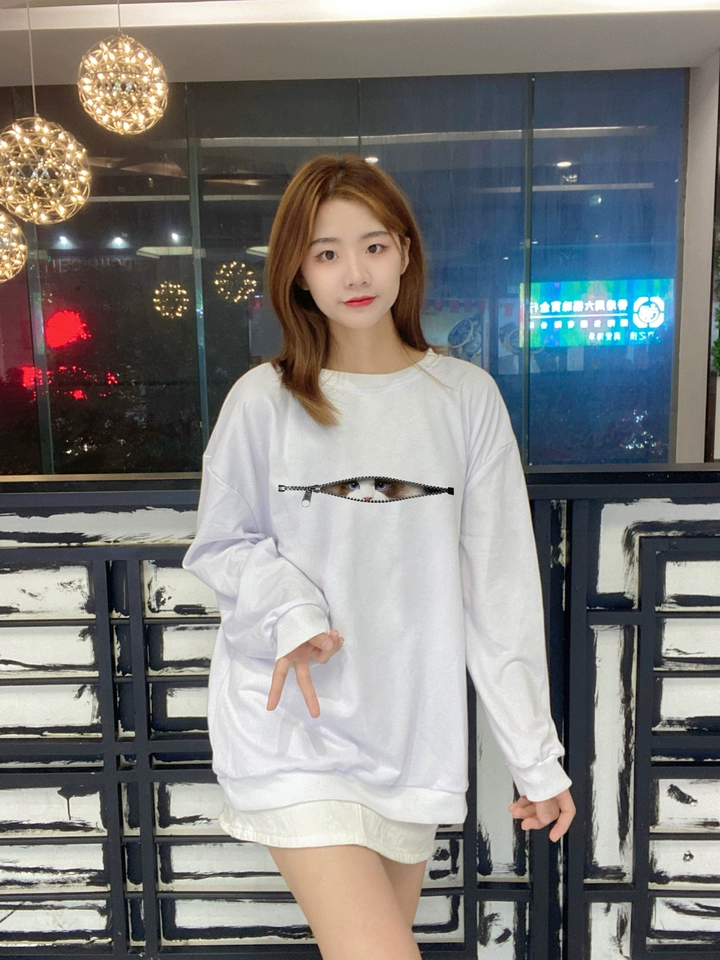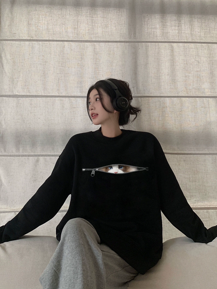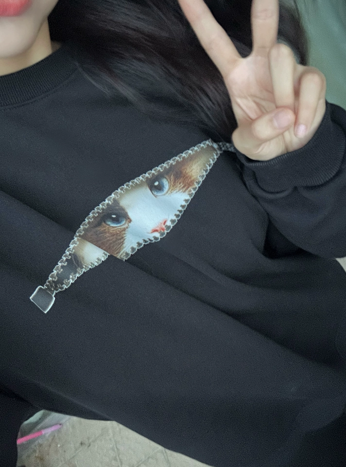 Combinando moda e conforto, este sweatshirt é perfeito para as temporadas de outono e inverno. Feito de tecido macio e de alta qualidade, oferece excelente aquecimento e um corte solto que proporciona amplo espaço para movimentos. O destaque do sweatshirt é o padrão único de gato, projetado de forma inteligente com um zíper que revela um olho de gato fofo e vivo ao ser aberto, ideal para mulheres elegantes amantes de gatos. A silhueta solta se adapta a vários tipos de corpo, e uma tabela de tamanhos detalhada ajuda os consumidores a encontrar o ajuste certo. Seja combinado com jeans ou uma saia, exibe um estilo sofisticado.