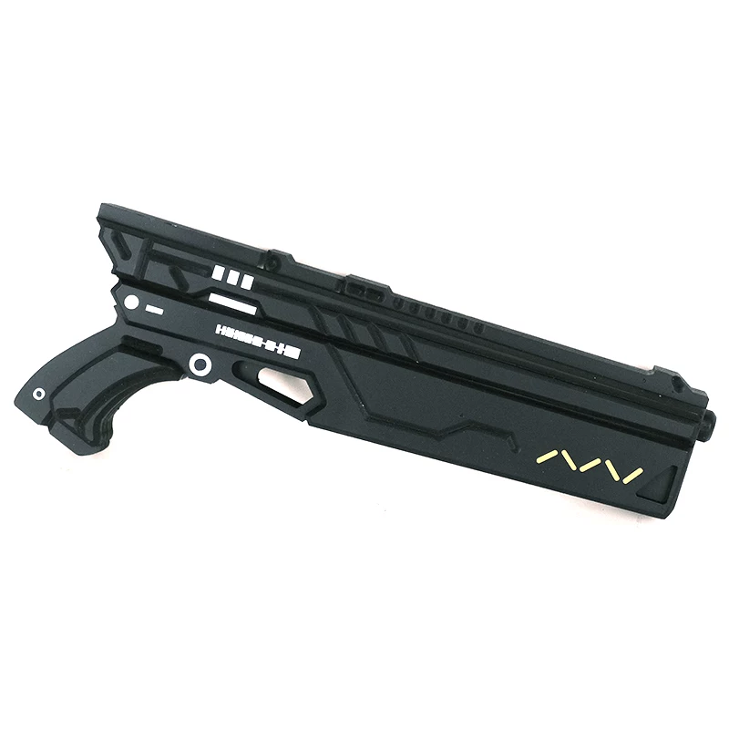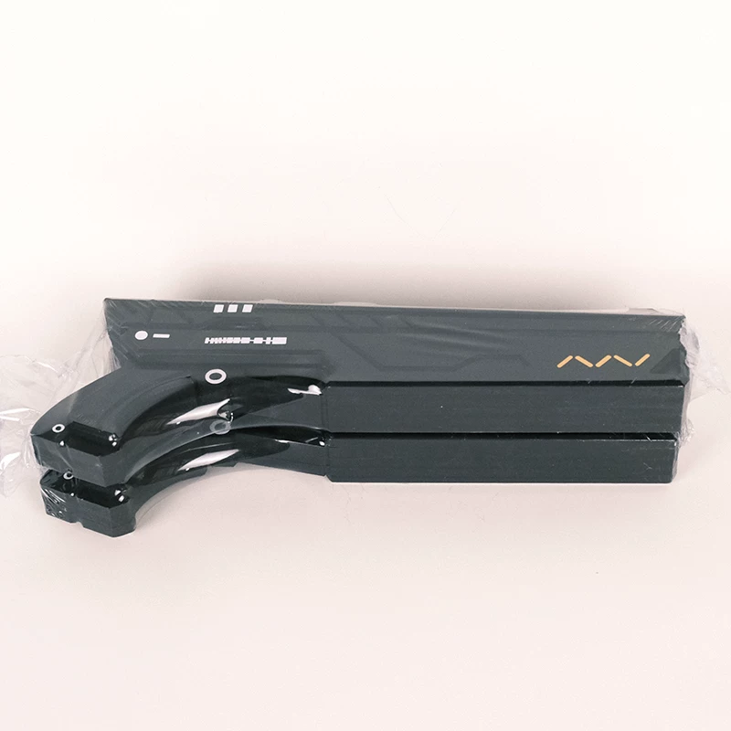 Made from lightweight EVA material, ensuring safety and durability. The appearance is black, treated to prevent fading and paint peeling. The body features metallic electroplated patches, enhancing its technological feel. With dimensions of 46 cm in length and 18 cm in width, it fits the grip habits of most players. The smooth line design provides a visually striking impact while enhancing the tactile experience. The special flashing feature and attention to detail are exceptionally well executed.