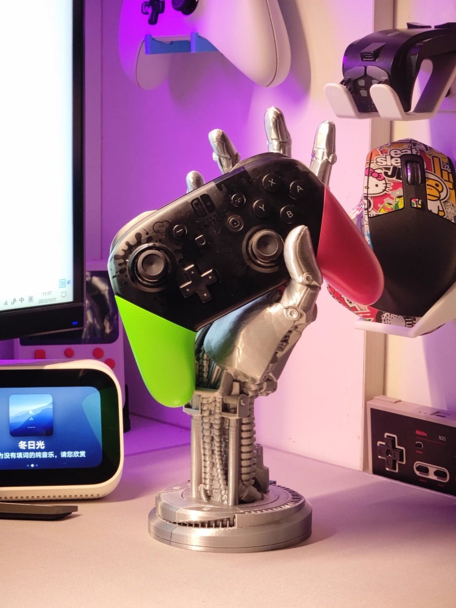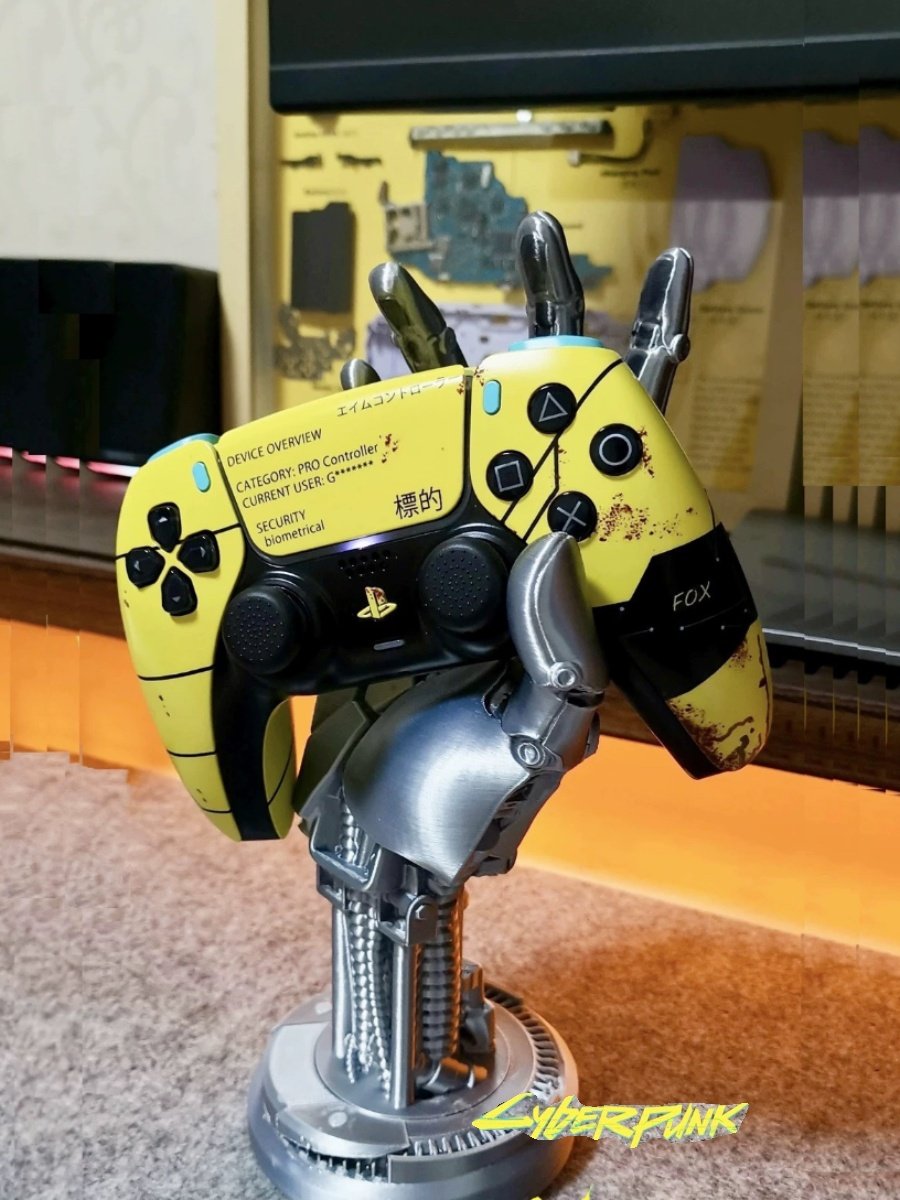 Киберпанк Механическая Рука — это подставка для игрового контроллера, вдохновленная дизайном видеоигры «Киберпанк 2077». Уникальный дизайн вдохновлен кибернетической рукой персонажа Джонни Сильверхэнд. Она совместима не только с контроллерами Xbox, PS4 и PS5, но также может использоваться в качестве подставки для наушников или других предметов. Украсьте свое игровое пространство стильным будущим и выразите свою любовь к миру киберпанка.