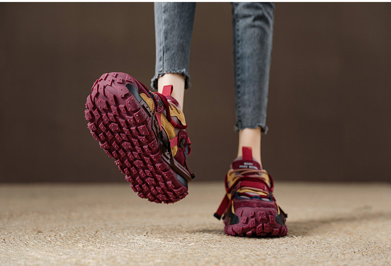 Наденьте эти красные кроссовки с толстой подошвой. Удобный круглый носок позволяет носить их легко, не стесняя ноги. Антифрикционный дизайн на пятке обеспечивает мягкость и комфорт без возникновения мозолей. Рифленая антискользящая подошва из резины обеспечивает отличное сцепление и легкое ощущение. Верх изготовлен из кожи, а внутренняя отделка выполнена из дышащего материала, чтобы ваши ноги оставались свежими и комфортными в любое время.