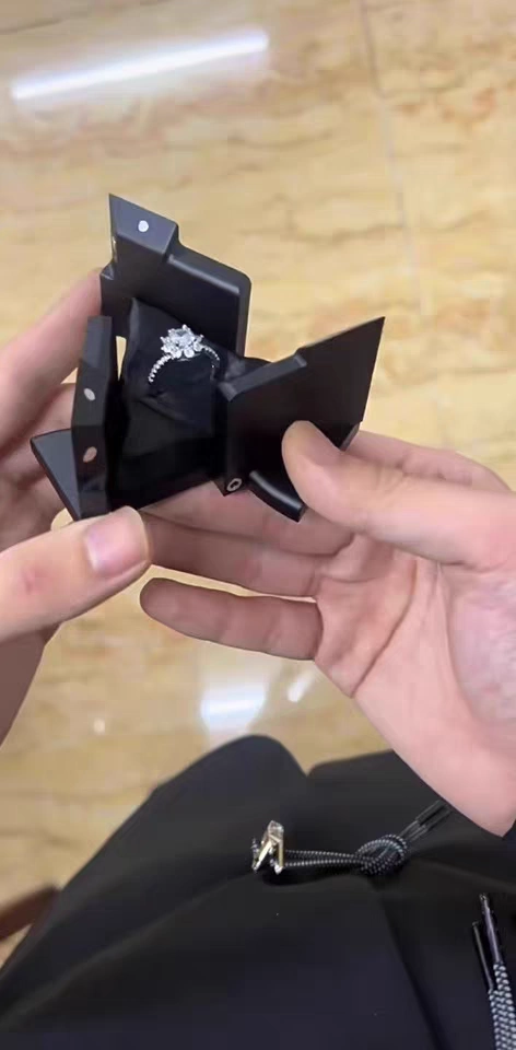Когда она закрыта, коробка выглядит как обычная квадратная коробка, но при открытии красный бархат внутри подчеркивает сверкающее кольцо, мгновенно привлекая внимание. Этот дизайн не только усиливает красоту кольца, но и добавляет драматизма в процесс предложения.