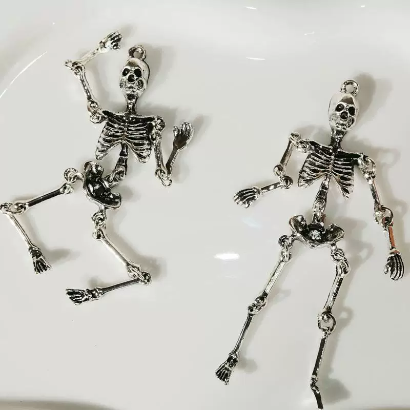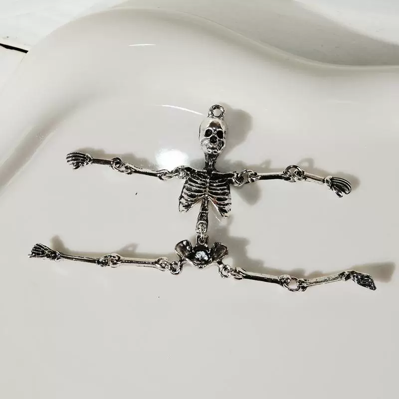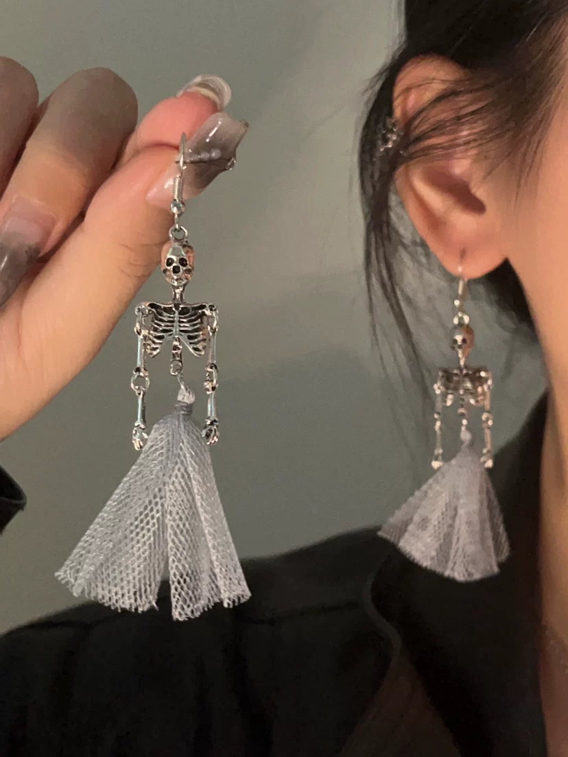💀🖤 Эти скелетные серьги в темном стиле имеют основу из винтажной меди, подчеркивающей детали скелета с помощью состаренной отделки. В сочетании с колеблющимися металлическими пуховками они воплощают готическую загадочную эстетику. Длиной около 10 см, они включают полное оформление ребер, позвоночника и черепа, идеально подходящие как для «страшных вечеринок» на Хэллоуин, так и для повседневного панк-образа. Легкий и гипоаллергенный материал доступен в версиях на заколках и клипсах, сочетая креативность и практичность.