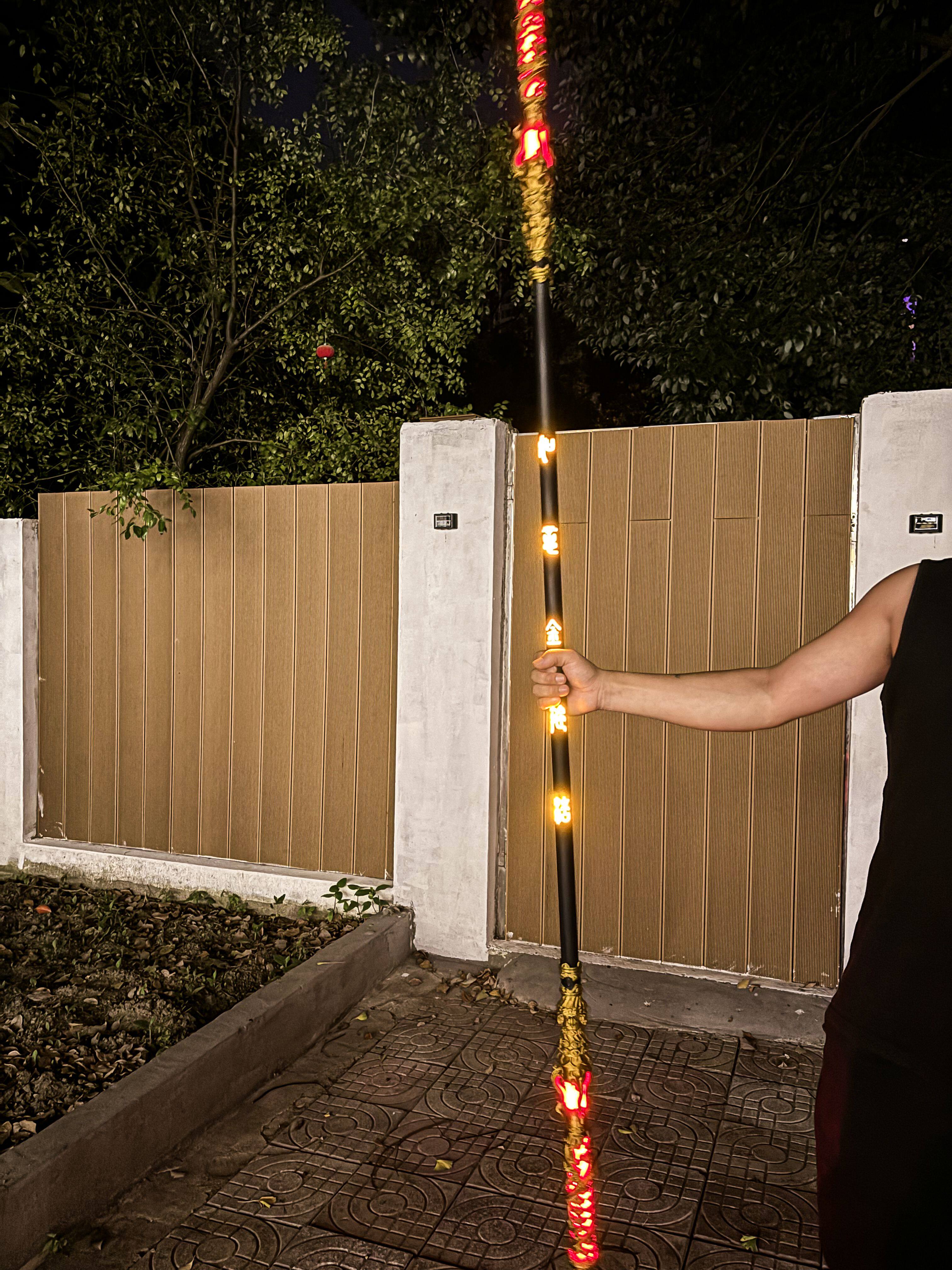 Модель Золотого Жезла с управлением голосом является идеальной репликой оружия Царя Обезьян из популярной игры «Черная Мифология: Укун». С общей высотой 1,95 метра она демонстрирует высокий уровень точности и сложного ремесла. Изысканный дизайн в золотом и черном цветах подчеркивает величие и тайну, как будто переносит мифический мир игры в реальность.
