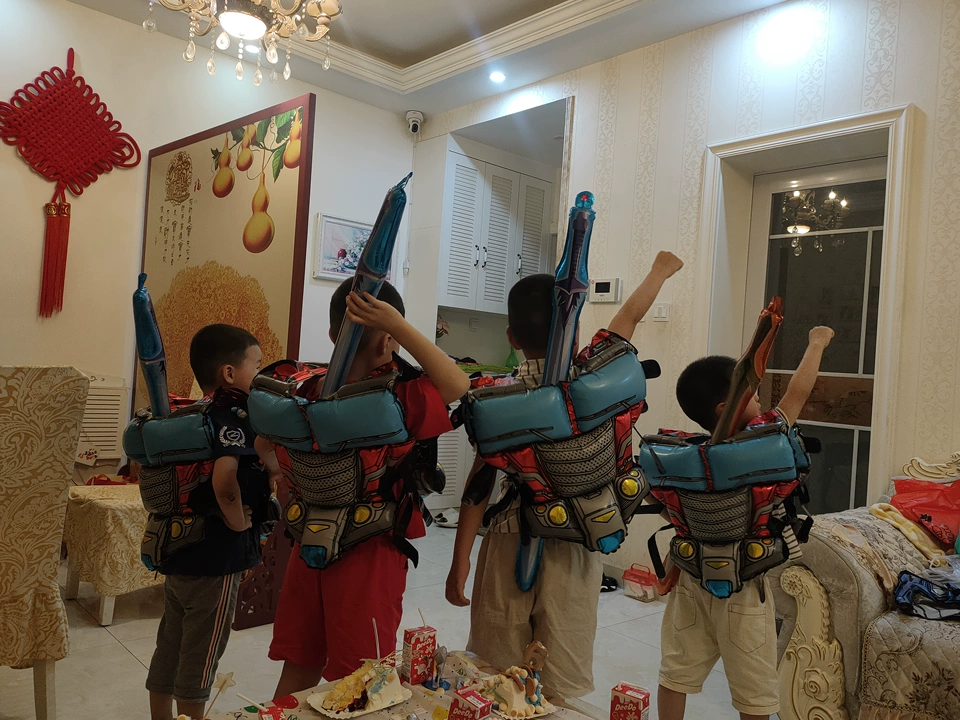 Костюм для ролевых игр, специально разработанный для детей, идеально подходящий для того, чтобы дети наряжались в персонажей аниме на днях рождения. Этот комплект оформлен в тематике Transformers и может разбудить детскую фантазию. В комплект входят надувная броня и пара реактивных рюкзаков, изготовленных из алюминиевой фольги, что обеспечивает безопасность и защиту от взрывов. Броня разработана с учетом детской фигуры, что обеспечивает комфорт при ношении и легкость в движении. Сочетание реактивных рюкзаков и брони создает полный образ Transformers, увеличивая веселье.