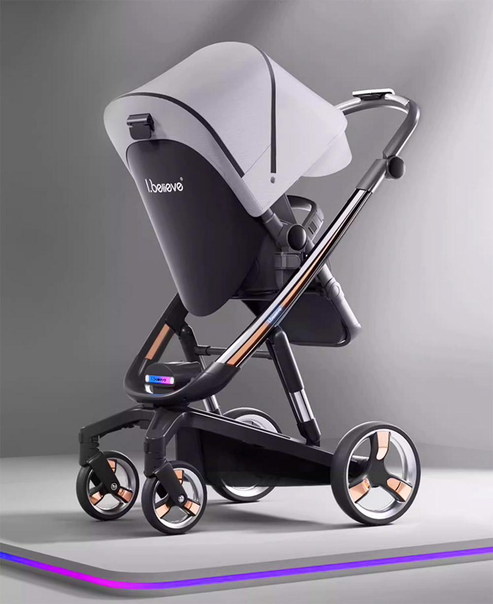 The Aibeli Future 8S Smart Baby Stroller liberates parents’ hands with AI automatic follow technology. Equipped with 0.3-second emergency brakes and night vision lights, it ensures your baby’s safety. Its triple shock absorption system (sturdy/moderate/soft adjustable settings) adapts to various terrains, while the 180° flat sleeping basket protects your newborn’s spinal development. Weighing only 9.7 kg, the lightweight magnesium alloy frame supports both forward and backward pushing, combining technology with practical experience.