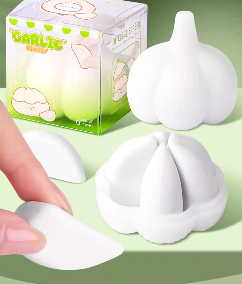 This hyper-realistic garlic bulb eraser turns ordinary stationery on its head! Featuring detachable cloves, a green mesh bag, and a fun tag, it’s both a handy eraser and a desktop stress-relief cutie. The dust-free formula erases smoothly without a trace—perfect for students, illustrators, and journaling fans alike. Blending practicality with playfulness, this “garlic” makes studying and working much more fun, sparking endless inspiration.