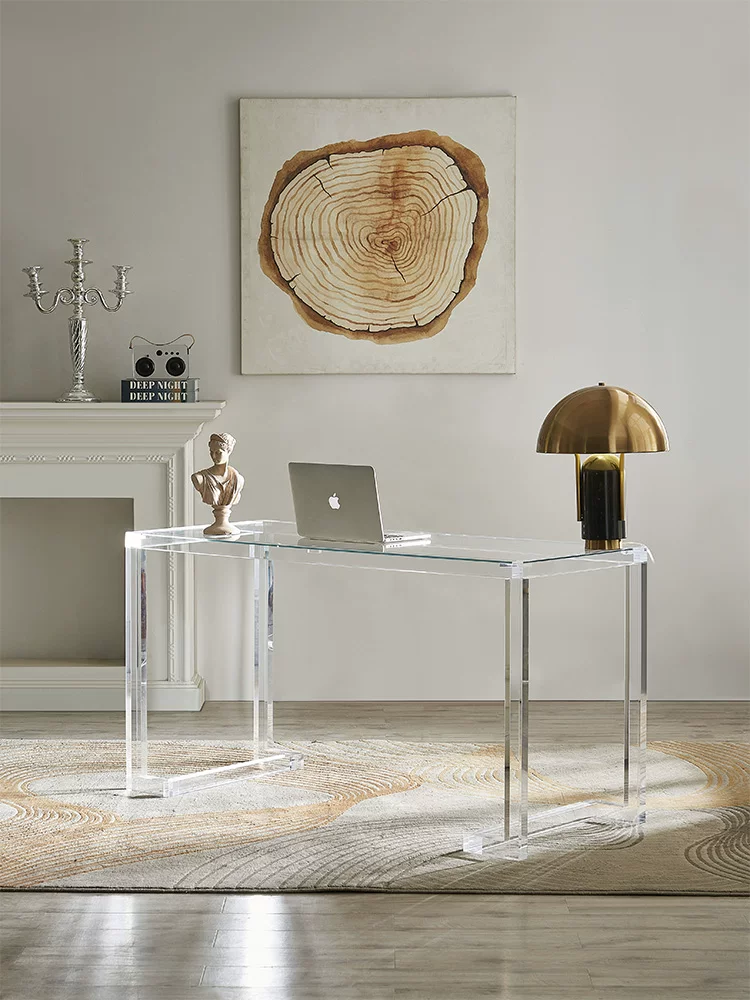 桌子採用高品質亞克力材料製造,具有優良的耐用性和抗壓性,表面光滑,易於清潔。同時,亞克力材質的光線透過性極佳,使得整個空間更加明亮。透明設計讓桌子與環境無縫融合,不會占用視覺空間,適合在陽台上享受陽光,或在餐廳中與家人共享美好時光。
