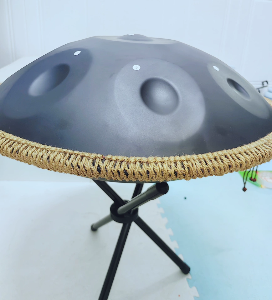 在音质方面,手碟鼓的音色极为空灵、动听,能够创造出丰富的音调和和谐的旋律。灰烬钢的材质赋予了其独特的音色,音域宽广,能够演奏出深沉的低音和清脆的高音,适合多种音乐风格,如放松音乐、冥想音乐、民谣等。此款手碟鼓通常配备了多个音区,每个音区对应不同的音符,演奏者可以通过不同的敲击技巧,轻松演奏出复杂的乐曲。