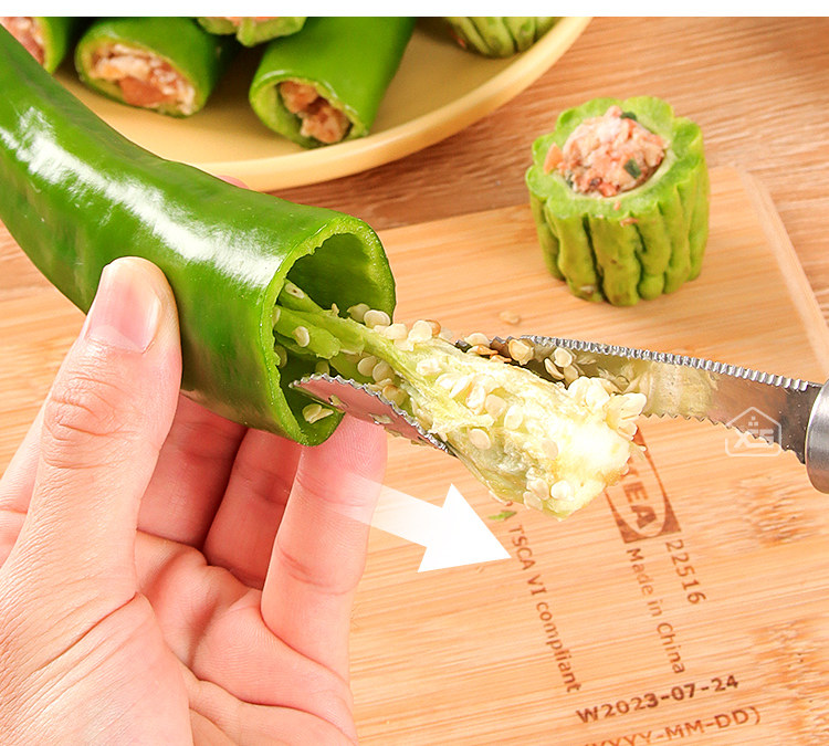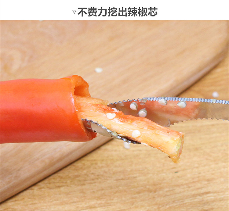 Posted in 服务用品 「轻松去芯,快速切开」— 多功能辣椒处理工具 Author: WareSeeker Leave a Comment on 「轻松去芯,快速切开」— 多功能辣椒处理工具 采用304不锈钢制成,配备螺旋锯齿设计,完整取芯,不伤辣椒,省时省力。不论是辣椒菜还是番茄、苦瓜等食材,一转一拔即可轻松去芯,切断纤维,方便取芯。双侧锯齿刀口设计,快速切开辣椒,让烹饪更加高效便捷。 设计用途和创意观点的联想: 家庭厨房利器:无论你是一个经常在家烹饪的家庭主妇/主夫,还是一个喜欢在家自己动手做菜的人,这个多功能辣椒处理工具都会成为你厨房中的得力助手。 老年人福利:对于年长者或手部功能不便的人群来说,这个多功能辣椒处理工具是一款贴心的设计。它的简单操作和省力特性,使他们能够轻松应对辣椒的处理,享受美味的饮食。 餐饮业利器:如果你是一家餐厅或食品加工企业的业主,这个多功能辣椒处理工具的高效处理能力和耐用性,可以大大提高烹饪效率,减少人力成本。 CreativeDesignPracticalSummary Buy Links 登录可用请先登录 Author: WareSeeker 文章导航 ← ProjeX投影游戏机,家庭游戏新体验!复古黄铜双节棍煤油打火机-男士必备个性烟具 → 发表回复 取消回复要发表评论,您必须先登录。